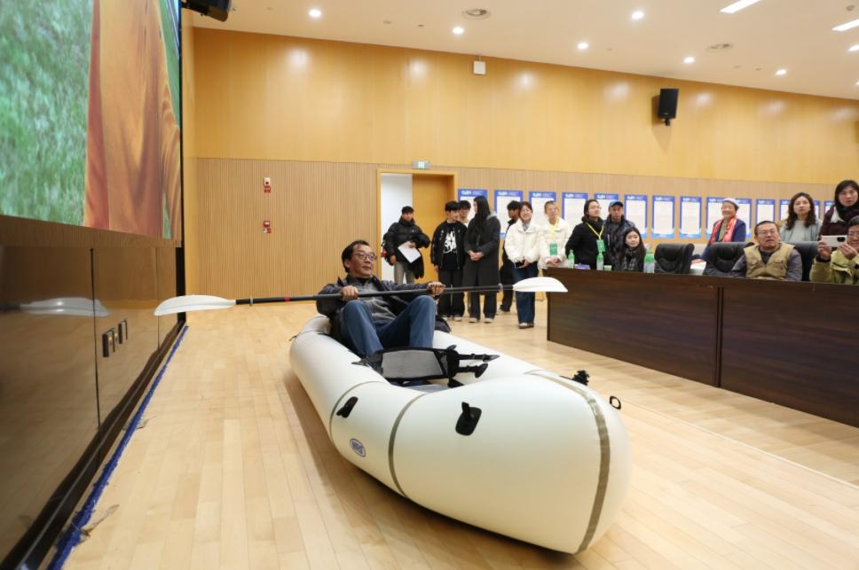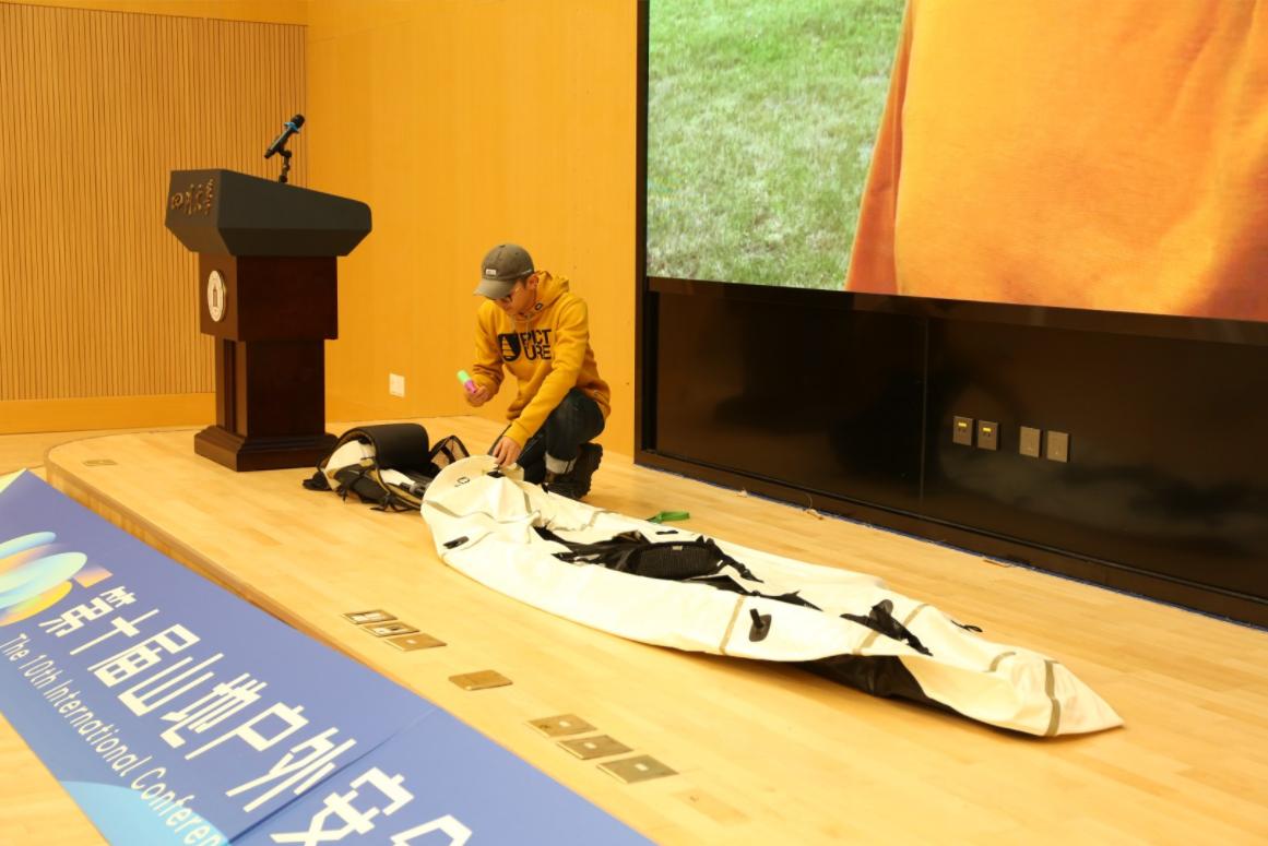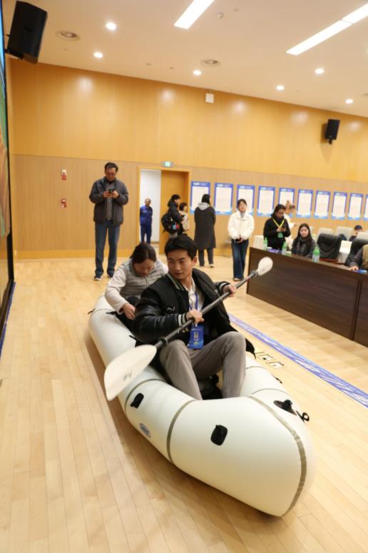 此次会议,MRS现场还带来了获得“2024亚洲户外大奖“金奖产品勘探员背包船,向大家展示了背包船在便携性、安全性及环境适应性方面的突出优势,同时邀请四川大学的同学和嘉宾们进行近距离试乘体验,在教练的指导下,亲身感受了背包船的操作特性。