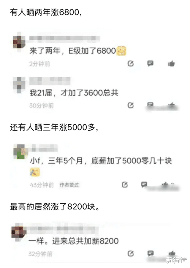 多数绩效达标员工的月薪涨幅集中在1000元左右,表现突出者可达到3200元/月,而少数绩效顶尖的核心技术人才或管理层,能斩获4500元/月的涨幅。