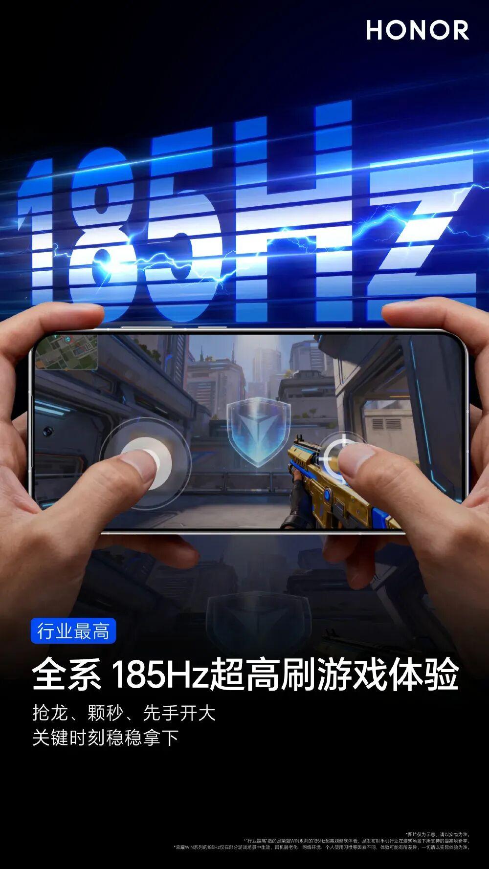 与此同时,荣耀手机在今天确认,荣耀WIN系列手机配备185Hz高刷绿洲护眼屏。