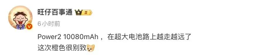 博主@旺仔百事通 在爆料中提到过:“Power2 10080mAh,在超大电池路上越走越远了。这次橙色很别致”。