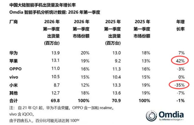 而从中国市场来看,小米跌了35%,也是跌的最惨的,从去年期的第一名,跌至第五名,而苹果居然涨了42%,你说夸张不夸张。