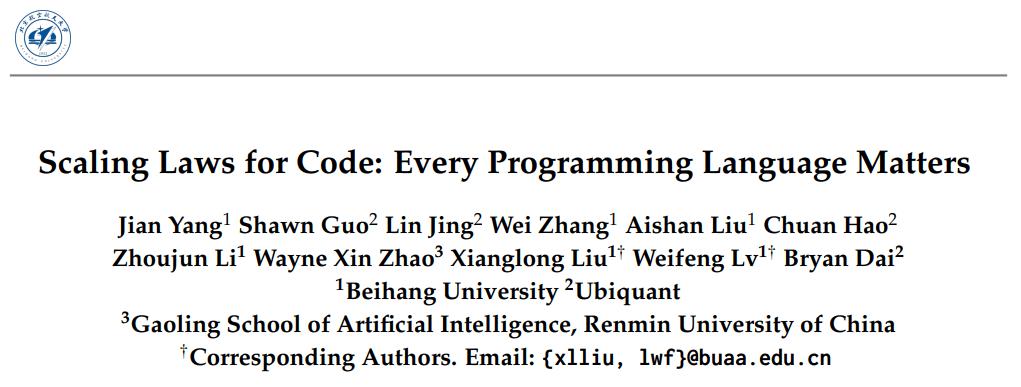 北航、人大和九坤投资共同撰写的论文 《Scaling Laws for Code: Every Programming Language Matters》 整理而成。