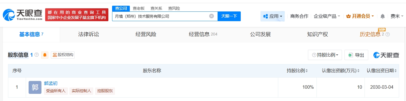 天眼查工商信息显示,“死了么”App关联公司月境(郑州)技术服务有限公司成立于2025年3月,郭孟初为法定代表人、董事、总经理并全资持股该公司,注册资本10万人民币,经营范围包括软件开发、软件销售、计算机软硬件及辅助设备批发等。值得一提的是,目前,该公司未申请注册“Demumu”商标。