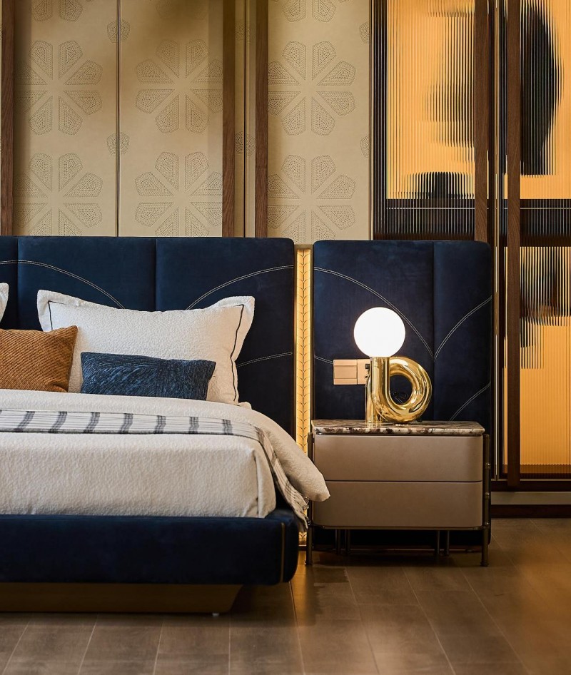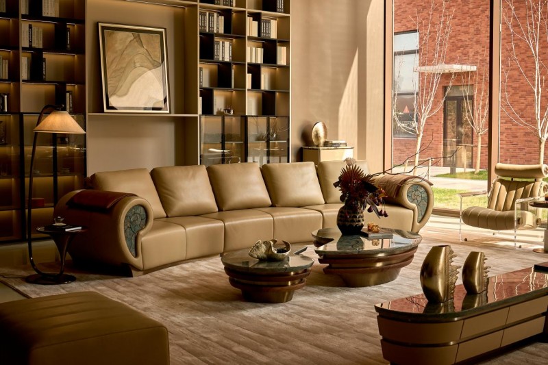 诚然,顶级木材、珍稀石材、精细皮料是高端家具的物理基础。但真正的“高端”,远不止于此。它体现在那些看不见却时刻被感知的细节里:是沙发坐下时那令人安心的绝对静音,源于与劳斯莱斯同源的皮革鞣制技术;是历经数月打磨,仅在0.8毫米缝隙间完成的艺术镶嵌,让家具成为可触碰的雕塑;是一套沙发耗资1080工时不设上限的研发投入,背后是对“完美”近乎固执的信仰。