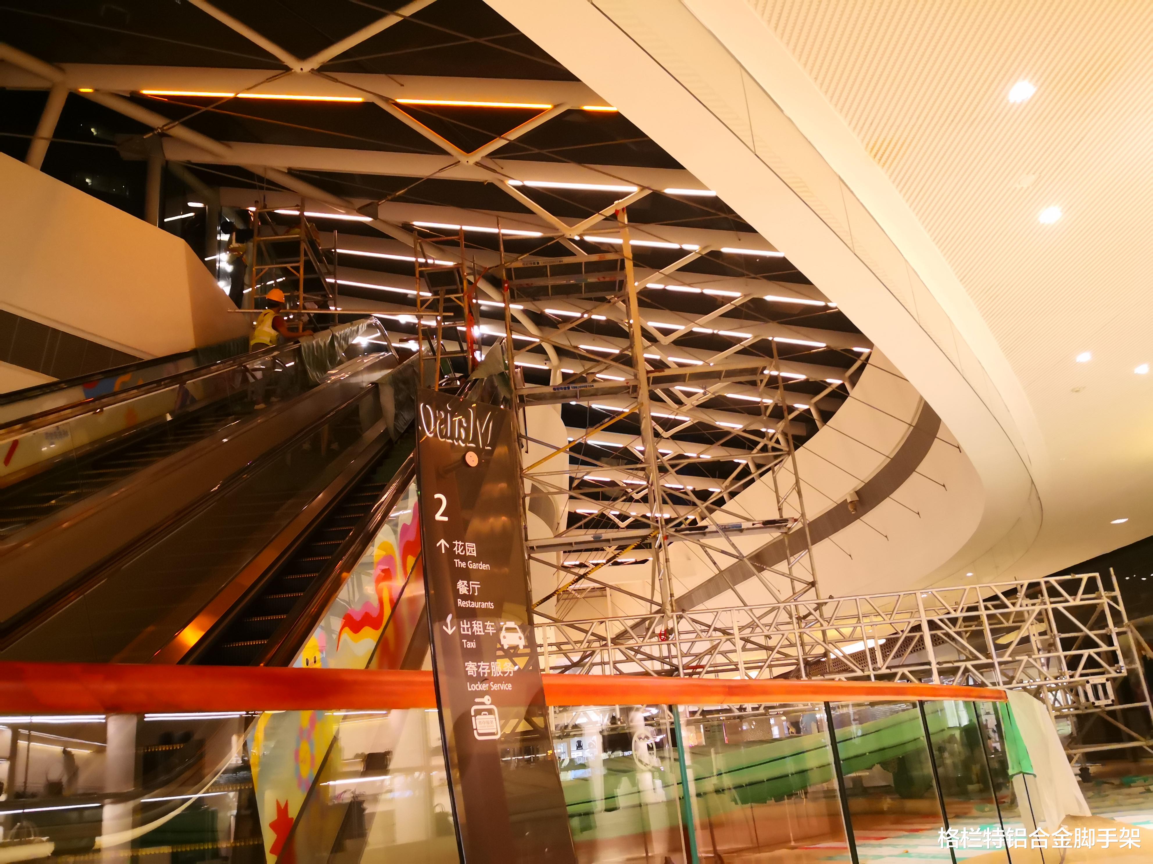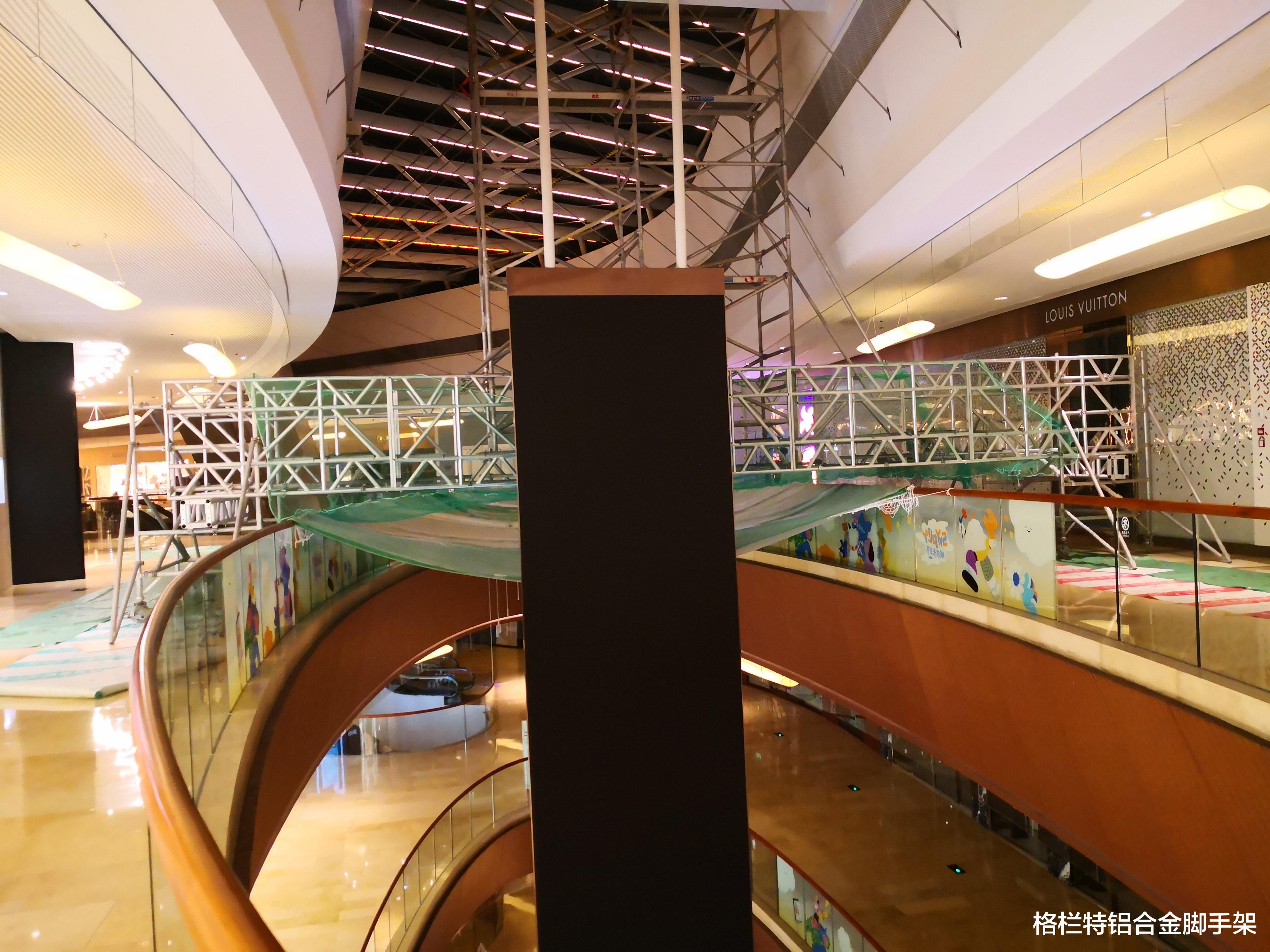 随着跨越式铝合金脚手架能有效的帮助特殊环境高空作业施工,如商场十几米的大幅度跨越平台以及酒店悬空的位置高空作业等。