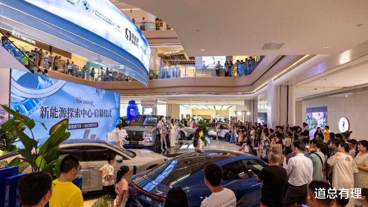 2013年,特斯拉在北京侨福芳草地开设了国内首家购物中心直营店,这种线上下单、线下体验的新零售方式,让整个行业耳目一新。随着新能源汽车消费浪潮点燃,国内车企们也轰轰烈烈地涌入各地大大小小的商场,新能源汽车逐步成为商场的“新标配”。它们不仅雄踞在客流量最多的一楼边厅位置,甚至连过道也不放过,纷纷搭起展台,成为一楼的“门面”。
