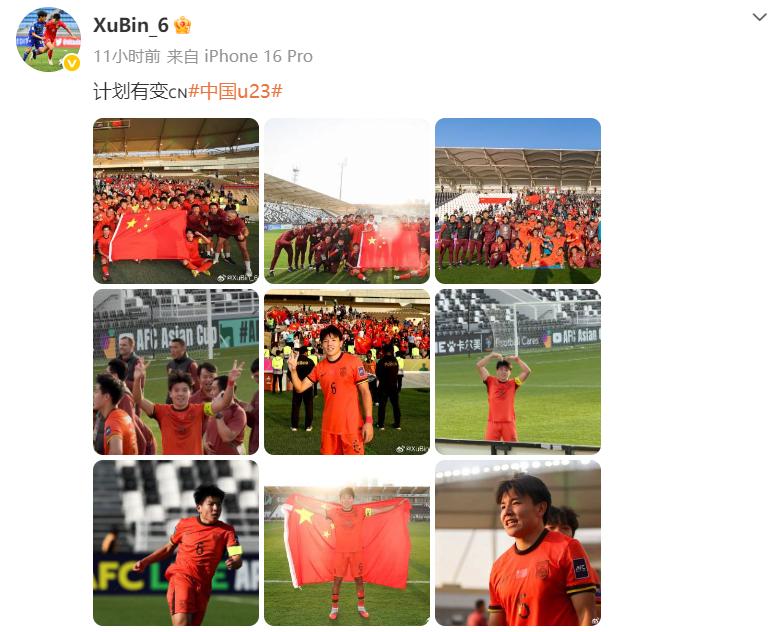 赛后, U23国脚们发文回应晋级四强。“门神” 李昊表示:感谢球迷们的支持,感谢远征球迷的助威,你们的加油声我们都听到了,今天的胜利是团队努力的成果,计划有变、继续向前!