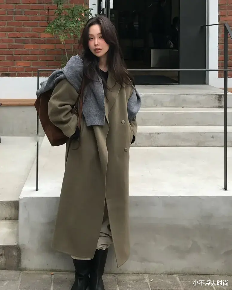 长款大衣也能穿得显高又自然,高腰处系一根同色系的腰带即可,整套穿搭大方气质,利落又有松弛感,韩系气质姐姐的高级感。▼