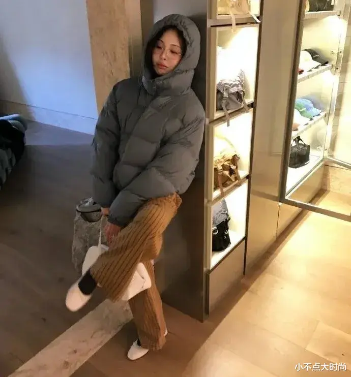 羽绒服选择短款的,搭配一件大地色系的竖条纹高腰裤,上短下长自然地优化比例显高,竖条纹元素本身也有视觉显高显瘦的效果,一整套虽是简约基础搭,却充满显高时尚的穿搭技巧,很高级。▼