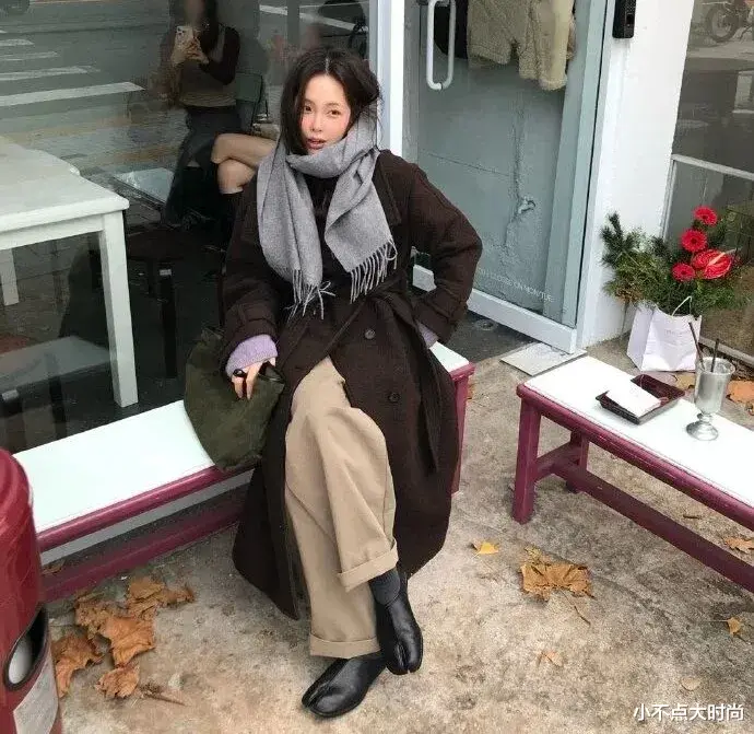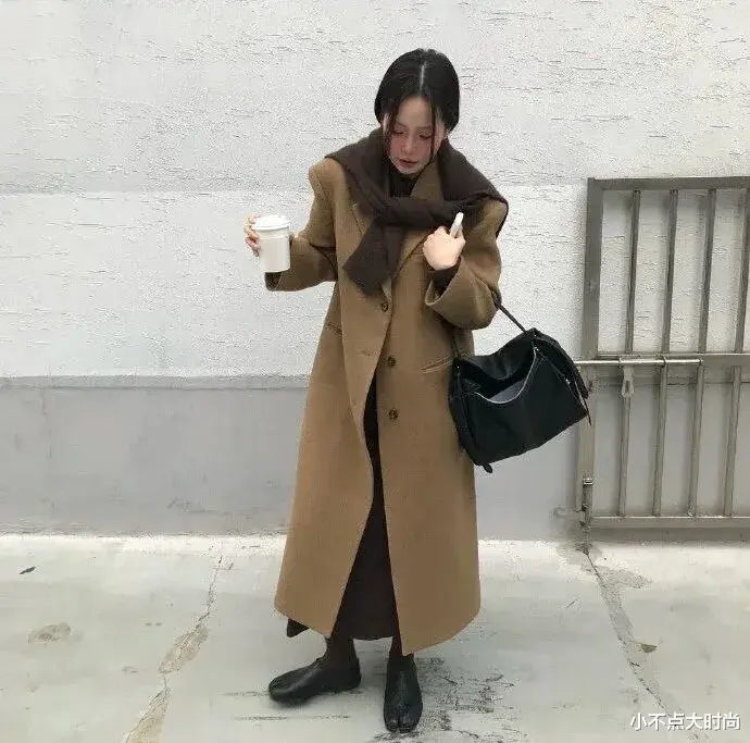 小个子穿驼色基础款大衣内搭同色系的深色调,一整套基础利落又气质。系上温柔的棕色系针织披肩,增添时尚感,让基础款的穿搭更显品位。▼