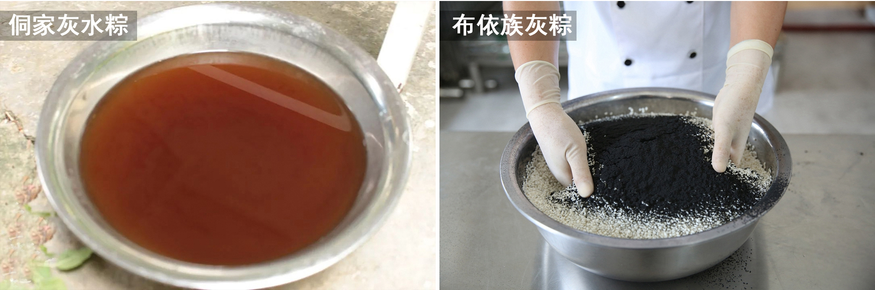 粽子含灰渣、呈暗黑色。