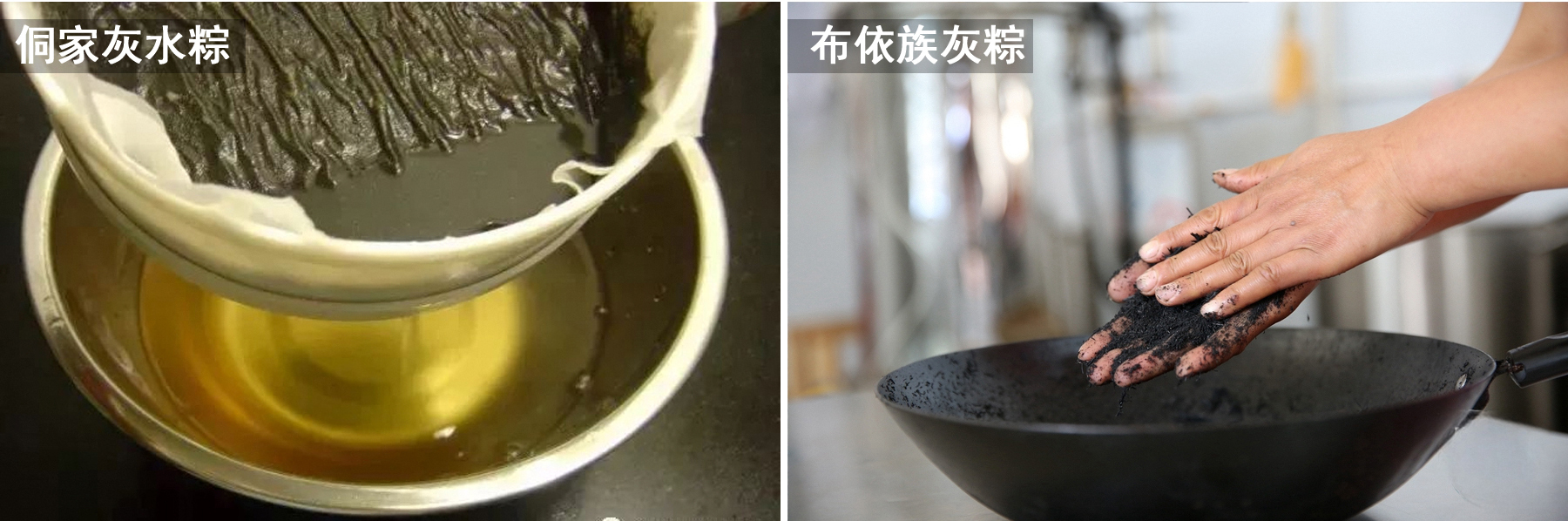 强调灰水的制备。将植物灰烬(如稻草、枫叶)浸泡于水中,经沉淀、过滤得到碱性灰水,再用此水浸泡糯米。