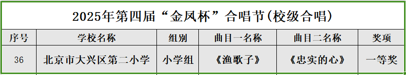 合唱社团在第四届‘金凤杯’大兴区中小学合唱节”中荣获一等奖。本届比赛采用了录像参评的形式,在学校的精心组织与老师的悉心指导下,合唱团成员们以饱满的精神状态,高质量地完成了参赛视频的录制,以最美好的歌声定格在镜头之中。比赛中,我们呈现了两首精心打磨的曲目:一曲《渔歌子》,以清澈悠扬的嗓音,绘出“西塞山前白鹭飞”的诗意画卷,展现了古典诗词的韵味与美感;一曲《忠实的心》,则以活泼欢快的节奏、真挚热烈的情感,唱出了童心世界的纯真与赤诚。两首作品,一动一静,相得益彰,充分展示了我校学子良好的音乐素养、扎实的演唱功底和出色的艺术表现力。