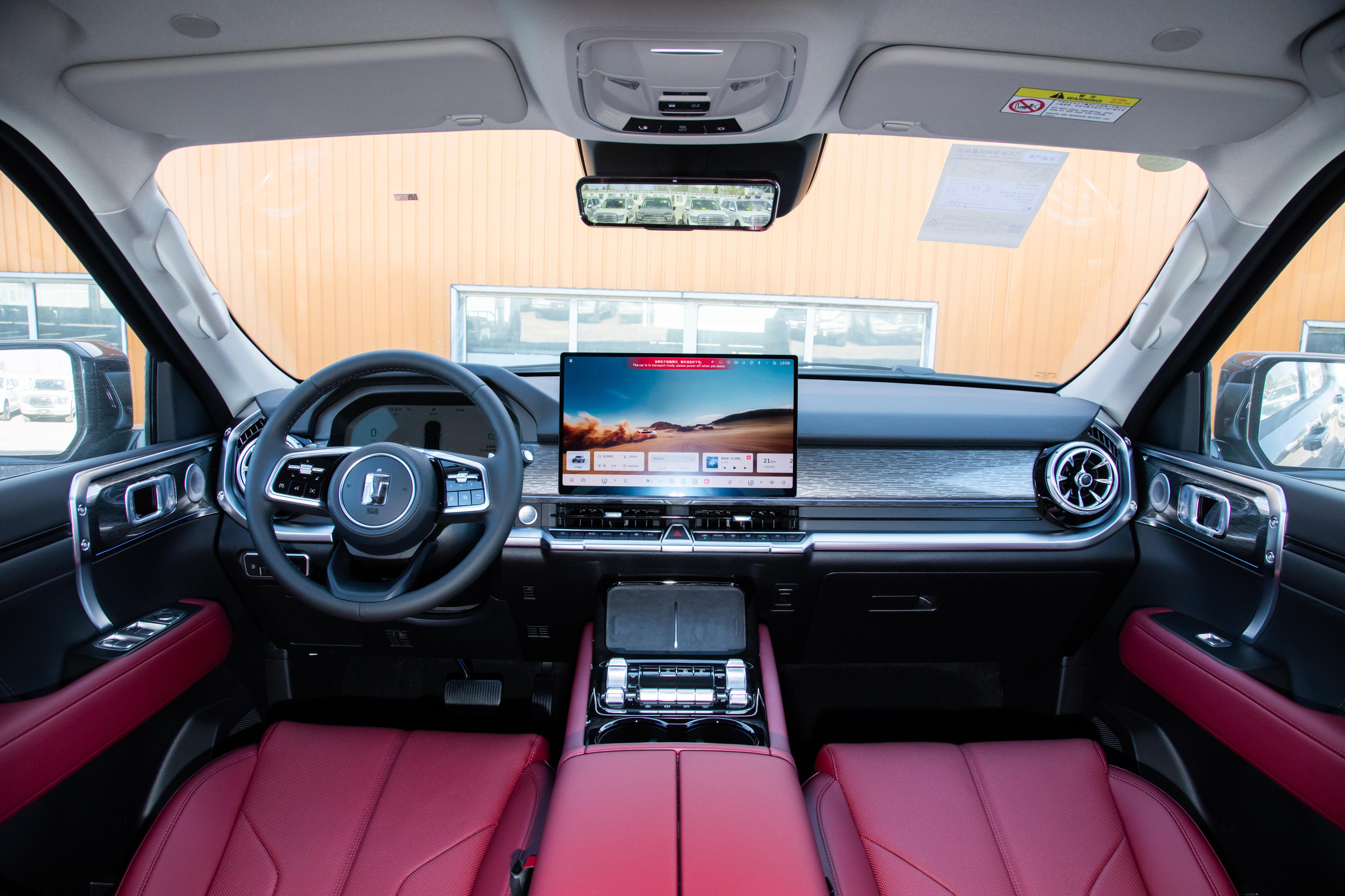 内饰设计上,两款车均贴合硬派定位,兼顾豪华感与实用性,风格差异显著。福特智趣烈马长滩增程版采用 Nappa 真皮座椅 + 真皮方向盘,质感细腻;电子式怀挡布局简洁,70 英寸 AR-HUD+15.6 英寸 2.5K 中控屏 + 8.8 英寸全液晶仪表,科技氛围拉满,21 扬声器 + 主动降噪加持影音体验。坦克 400 Hi4-T 以皮质方向盘 + 真皮座椅为基础,12.3 英寸全液晶仪表 + 15.6 英寸 2.5K 中控屏功能齐全,机甲风内饰细节与外观呼应。