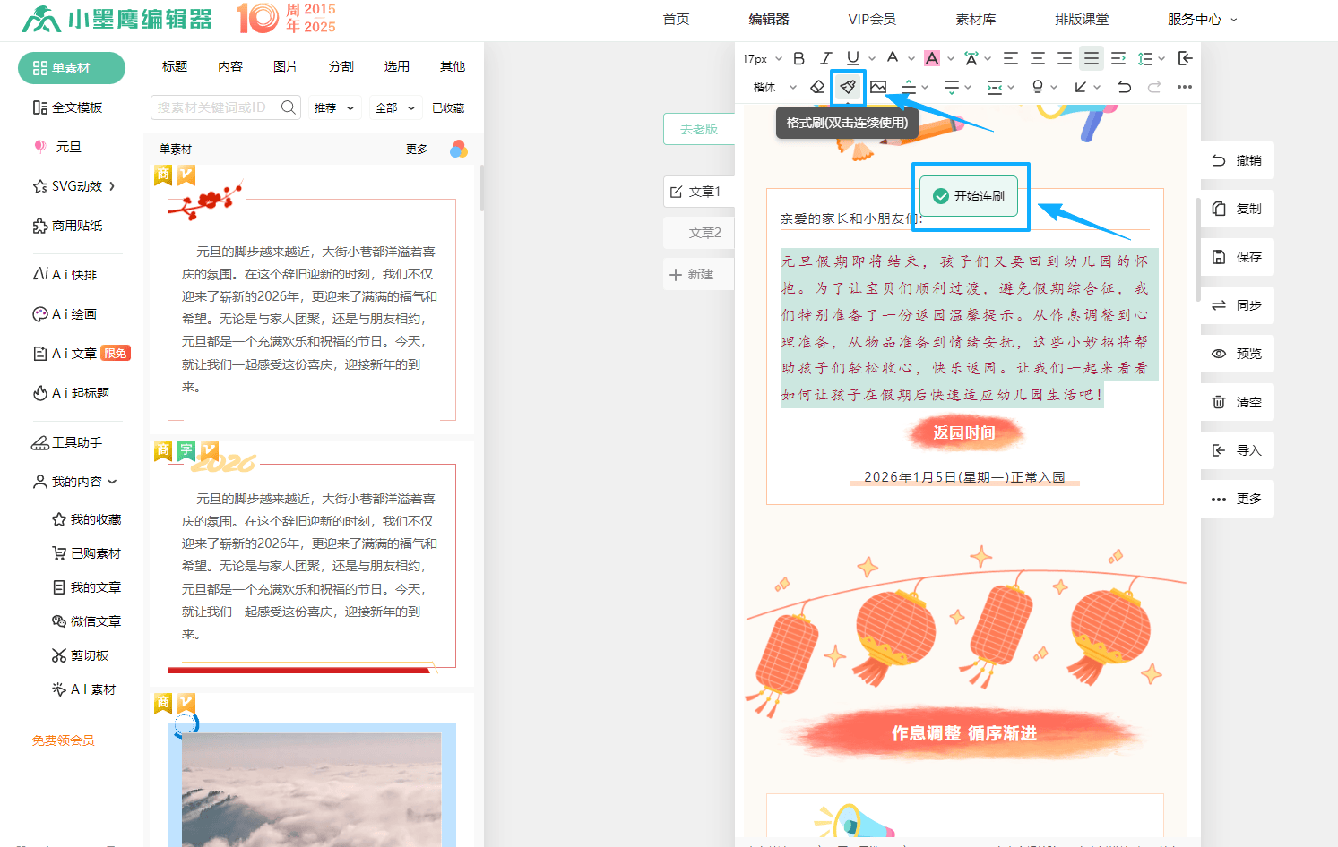微信图文排版怎么统一马年元旦收假推文文字格式?用这5个功能试试
