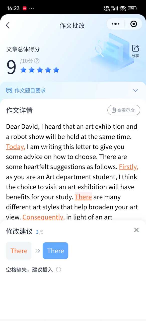 主题锚定:基于NLP语义分析,判断是否偏离衡水体作文高频主题(如"学习效率""传统文化"),例:学生作文《我的周末》未关联"时间管理"核心,AI提示补充"碎片化学习"案例。