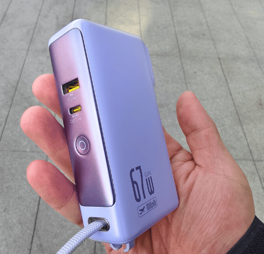 这款充电宝的主流功率为67W,可以为笔记本电脑提供一定的电量支持,还搭配了35W的苹果同厂芯片,为iPhone手机充电的速度还是比较快的。但需要注意这款充电宝在多设备充电的时候,功率会有所分配,充电的效率没有的单设备充电快。在容量上,这款搭配了10000mAh的锂离子电池,基本上能满足一天的电量使用需求,但是如果想要为笔记本提供长时间供电的话,这个容量的充电宝可能存在续航不足的情况。不过值得一提的是,它自带Lightning+Type-c双数据线,并且机身上还有USB-C和USB-A,能够满足不同设备的充电接口需求,使用的时候还是比较方便的。