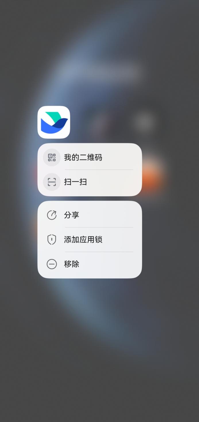 而且我发现,鸿蒙版飞书真的把“便捷”二字刻进了骨子里。比如它支持桌面快捷方式,不用点开App,长按图标直接就能选打开“扫一扫”或者“我的二维码”。别看这省掉的一两步,在赶时间的时候,这种不用到处找功能的“便捷感”简直太香了。