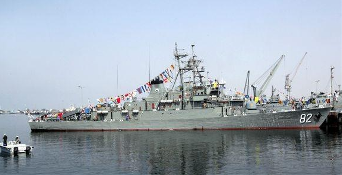 伊朗海军来了一艘PF-103“巴扬多尔”级轻型护卫舰82“纳格迪”号,满载排水量1135吨。主要舰载武器是1座伊朗仿制Fajr-27型76毫米舰炮,1座20毫米机关炮,2座双联装仿C-802的“努尔”反舰导弹发射架。