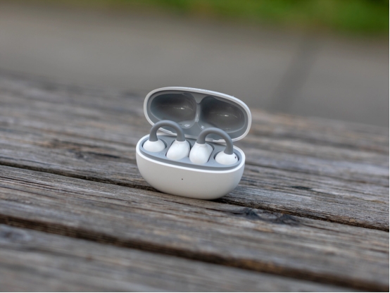 如果看重佩戴舒适度和续航,这款可以重点看看。它的耳夹部分用了记忆钛合金丝和 Ω 弧形桥设计,能跟着耳朵的形状调整弧度,戴起来不勒也不压,单只 5.3 克的重量,就算连续戴三四个小时,耳朵也不会觉得酸胀。