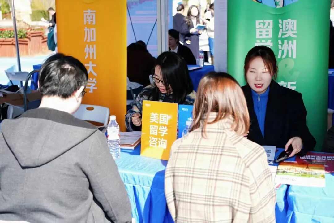 更为动人的,是那些藏在细节里的“温度”。在招聘会现场,学校没有让毕业生“单打独斗”,而是搭建了全方位的护航体系。“线上+线下”一体化服务体系,让毕业生在招聘会前就能通过线上平台查询企业名录、岗位详情及薪资待遇,扫码收藏意向单位、预约沟通,实现“未至现场,已定目标”。线下会场按行业分区设展,毕业生能快速找到目标行业的展位,节省对接时间。除此之外,现场还专门开设留学咨询区域,邀请资深专家提供一对一咨询指导,为有海外深造规划的毕业生提供院校选择、申请策略等专业建议,精准对接求职与升学的多元发展需求,全方位为学子的职业与学业规划保驾护航。