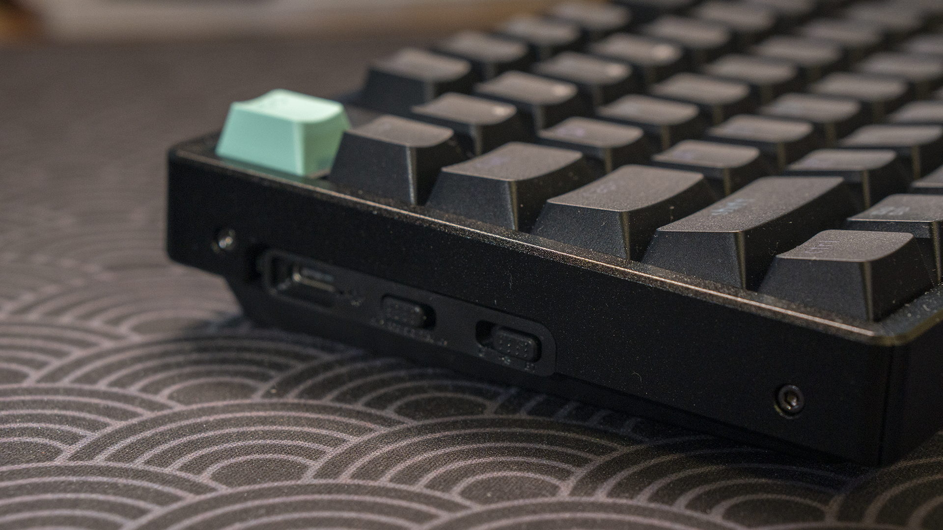 它的Win、Mac系统选择、蓝牙、有线、2.4G切换在键盘的左侧,稍微熟悉就能够盲操。