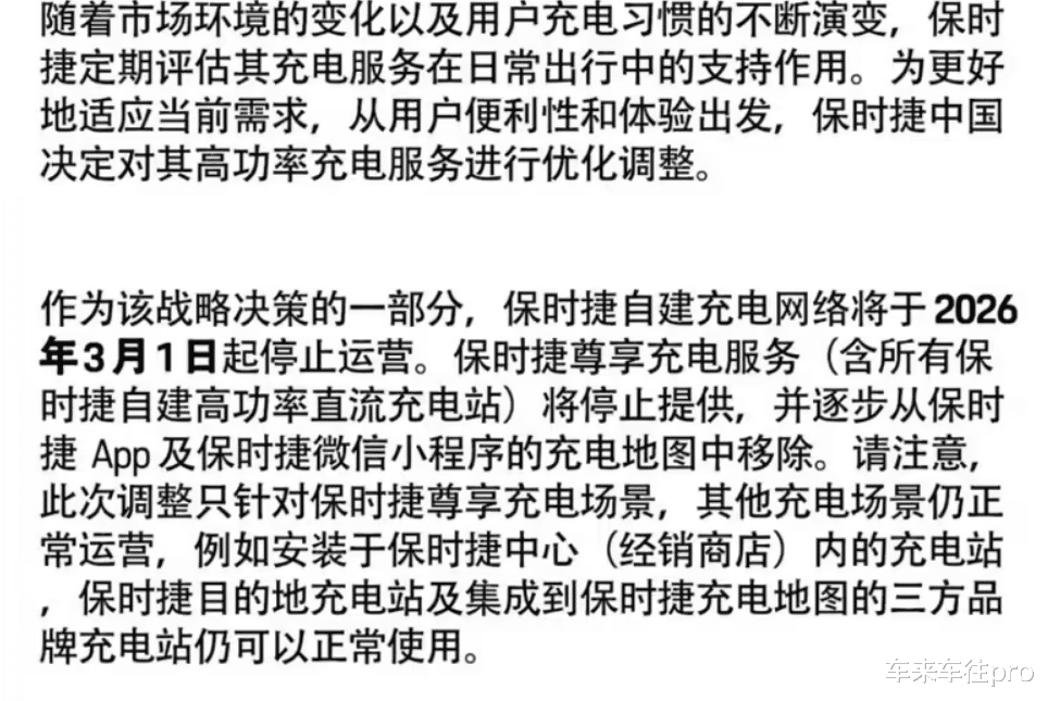 最近,保时捷中国正式宣布:将逐步停止旗下尊享充电站的运营服务,到 2026 年 3 月 1 日,这套自建充电网络将全面停运。
