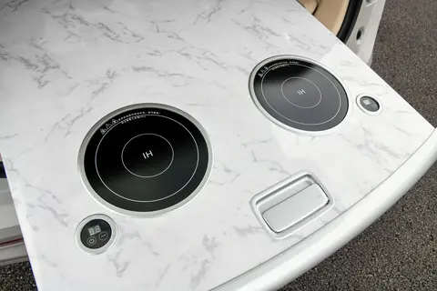 第五个场景是 “山野厨房”。车内配备两个嵌入式电磁炉和集成式餐厨桌,去郊外野餐时,煮火锅、做简餐都很方便,不用再携带一堆繁琐的厨具,轻松享受户外美食时光。