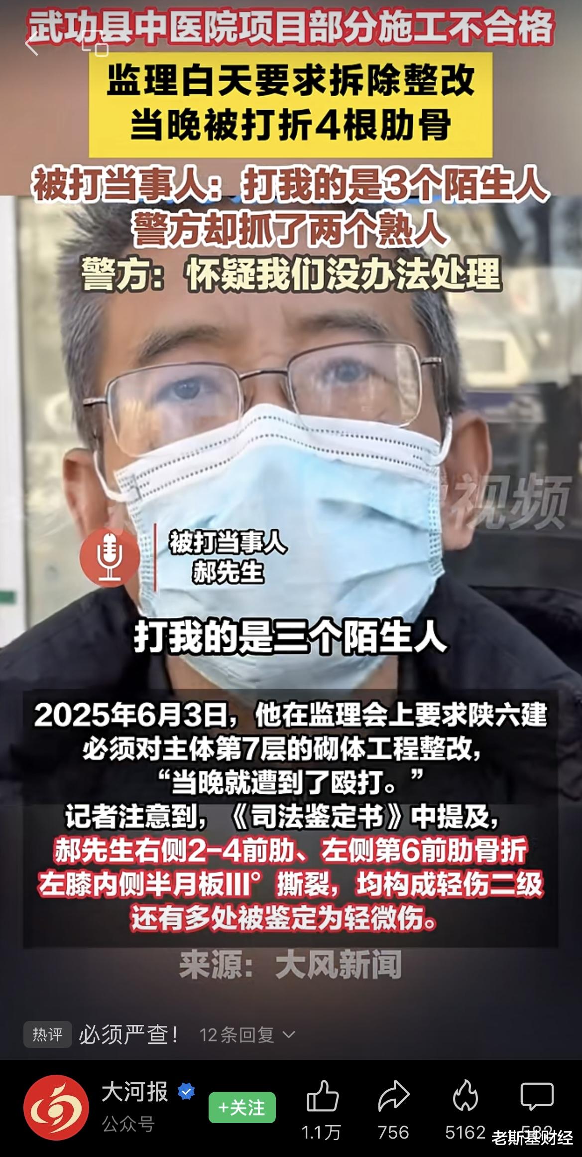 去年6月30日晚上,一家监理公司的郝监理遭到了3名陌生男子围殴,被打折了4根肋骨。