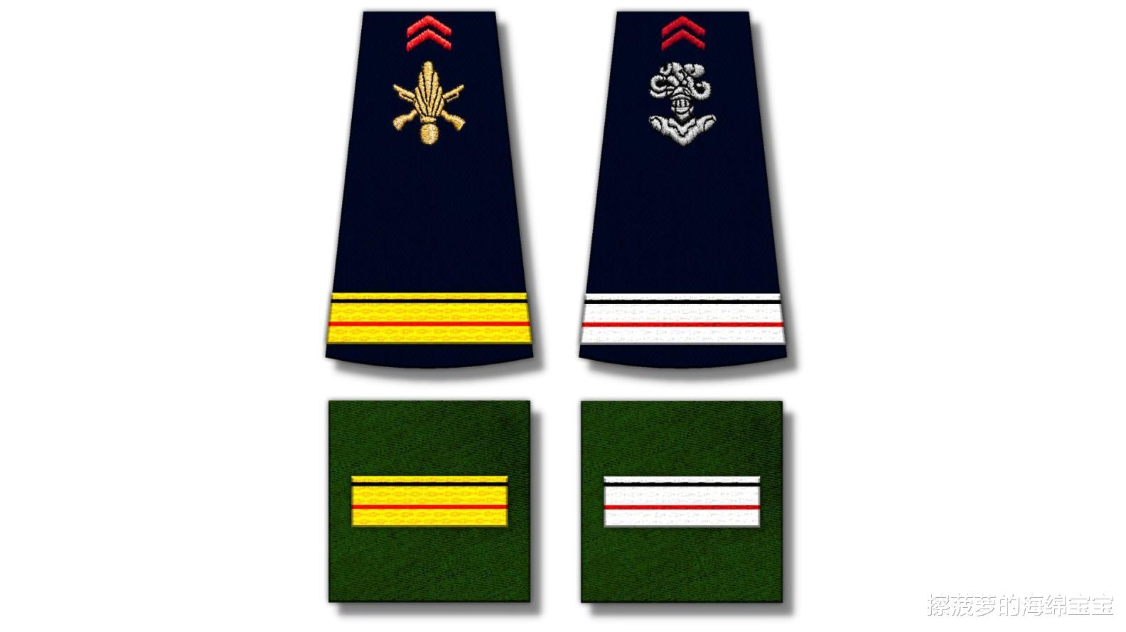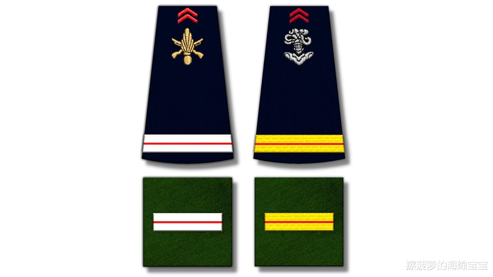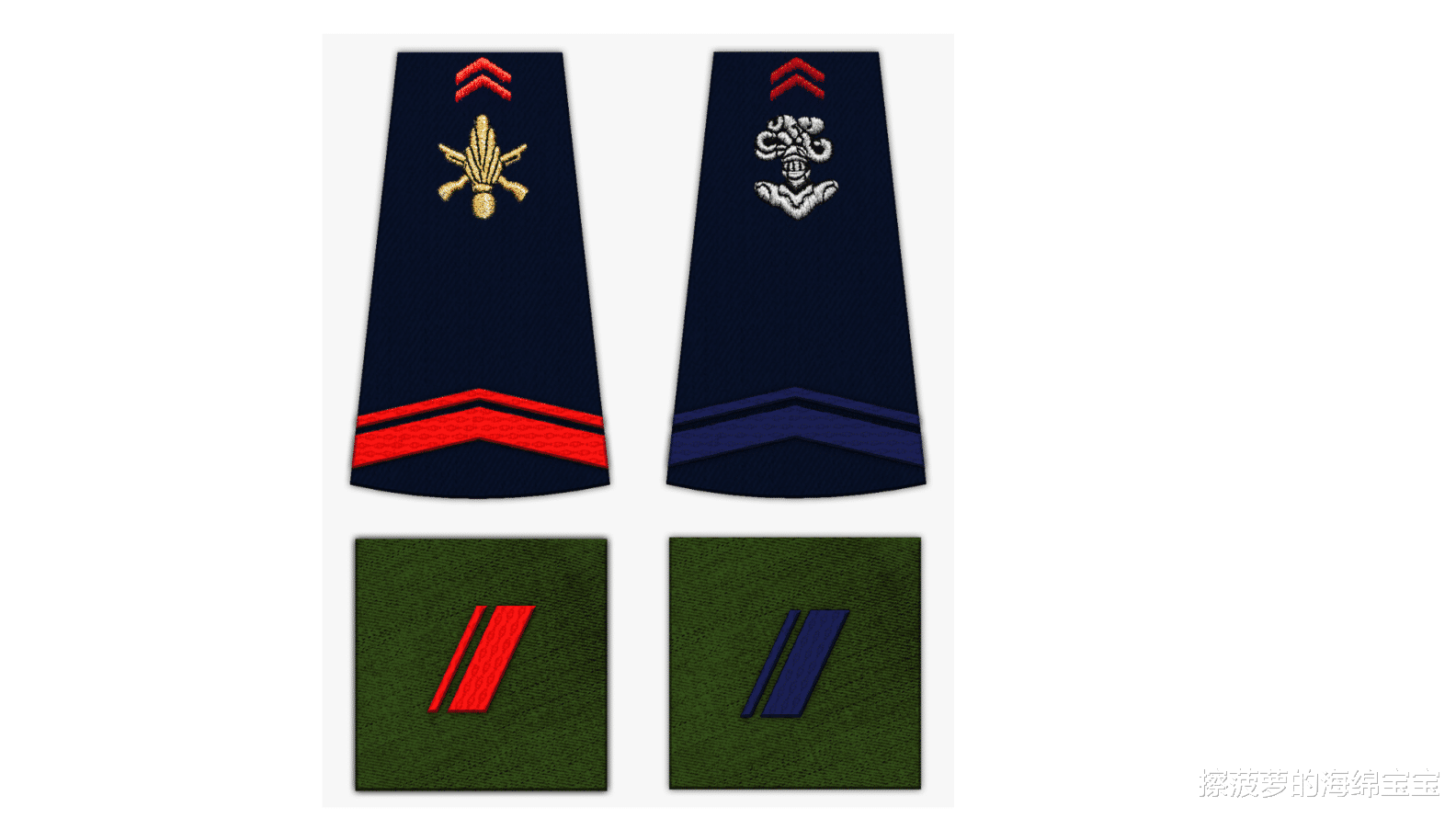 有些兵种可以同时佩戴金色和银色,比如外籍军团,陆军轻型航空兵,骑兵以及技术和行政。