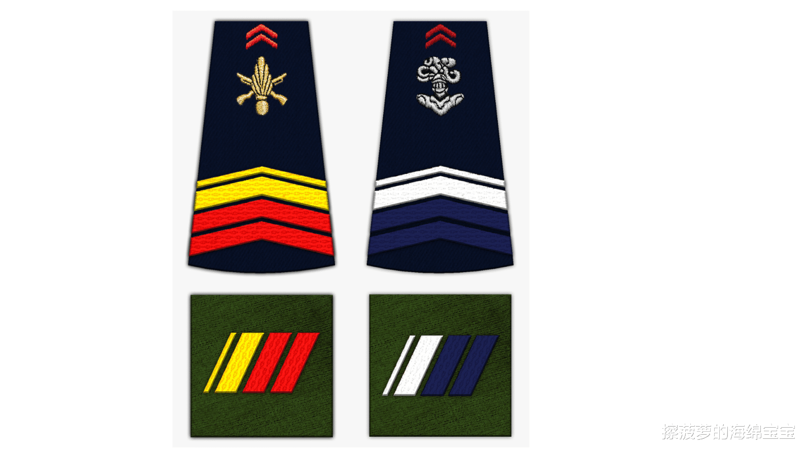 如果不想晋升为士官,那么服役满6年的下士就可以晋升为下士长。在骑兵团中,下士长被称为Brigadier-chef。