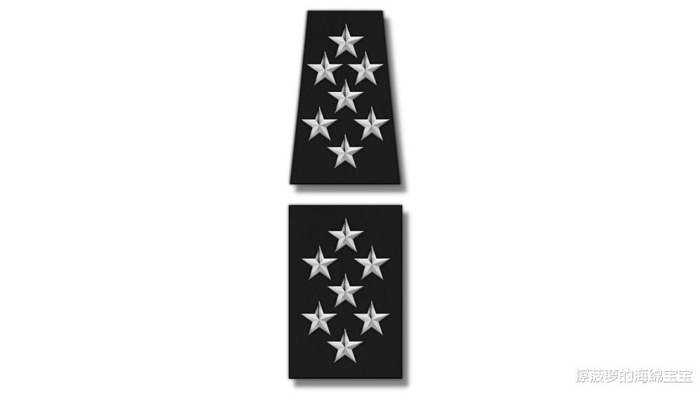 在一战时,法军的将军只有两星准将和三星少将,分别指挥旅和师,如果更大的编制比如军也由少将指挥,并在少将下面三星下加一条杠加以区分。所以法国元帅七颗星代表三星加四星(第三共和国之前法国元帅标志是交叉元帅杖和四颗星),代表少将军衔加授元帅荣誉头衔。