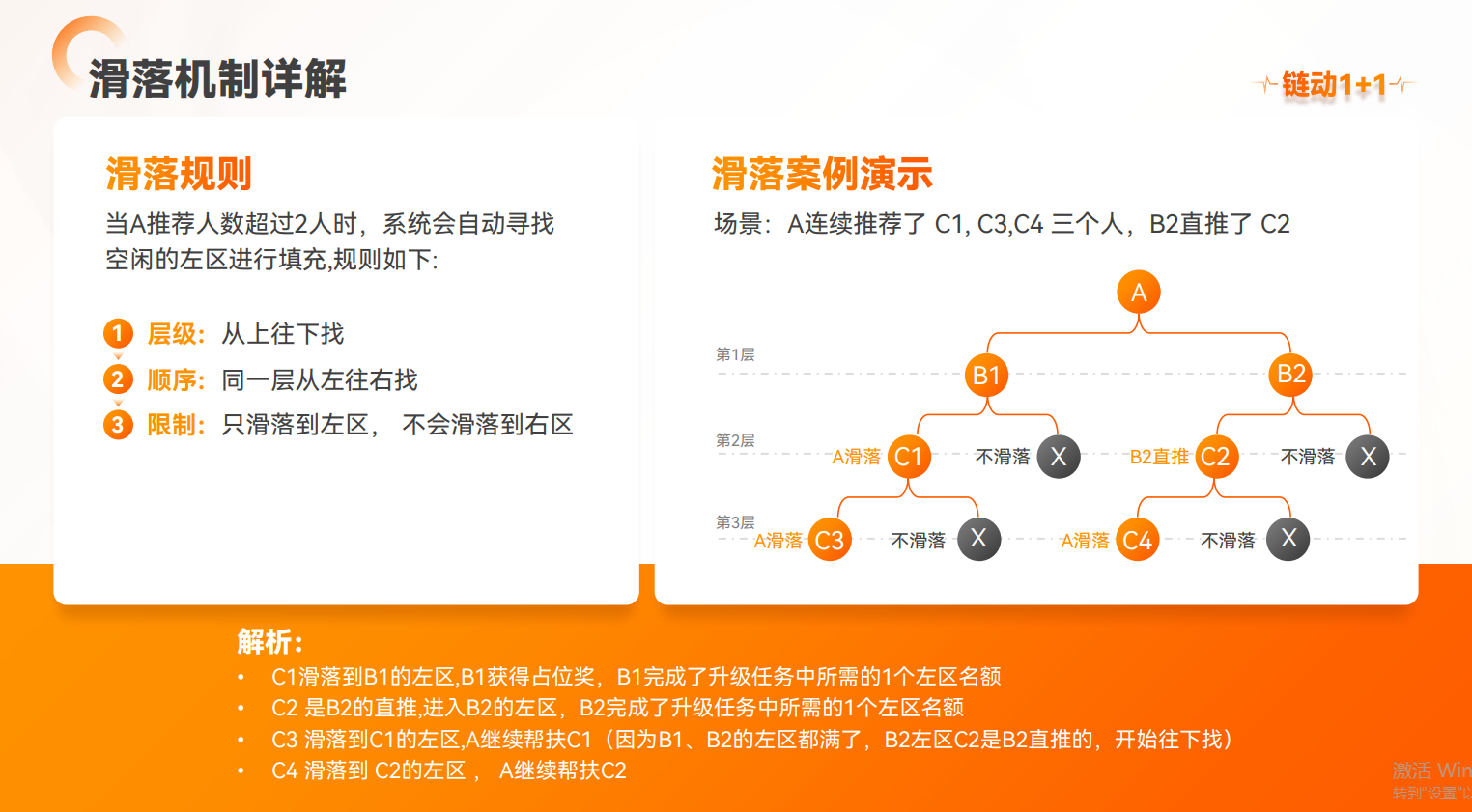滑落既是升级帮扶工具,也是收益分配的基础,使整个结构稳定扩展。