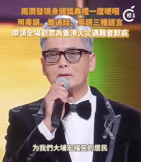 随后,周润发要求全场起立,为香港火灾遇难者默哀一分钟。
