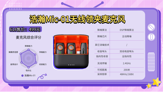 1.核心收音指标认准48KHz/24Bit:这是优质无线领夹麦克风的关键参数,代表能精准捕捉音频细节,还原自然人声,符合专业创作的基础要求,避免购买参数虚标或低于该标准的产品。