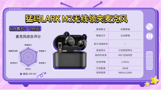 西圣Mike2麦克风将节省的广告费用全部投入技术研发,配备高品质进口定制6mm领夹麦镀镍音头、32位浮点数计算DSP和4重PSNE降噪算法模型,极大地提升了麦克风的抗噪能力和声音还原度。还通过了150多项高品质测试标准,远超行业常见的5-10项检测,续航30小时,6年内性能衰减度低于0.1%,性价比相当高。