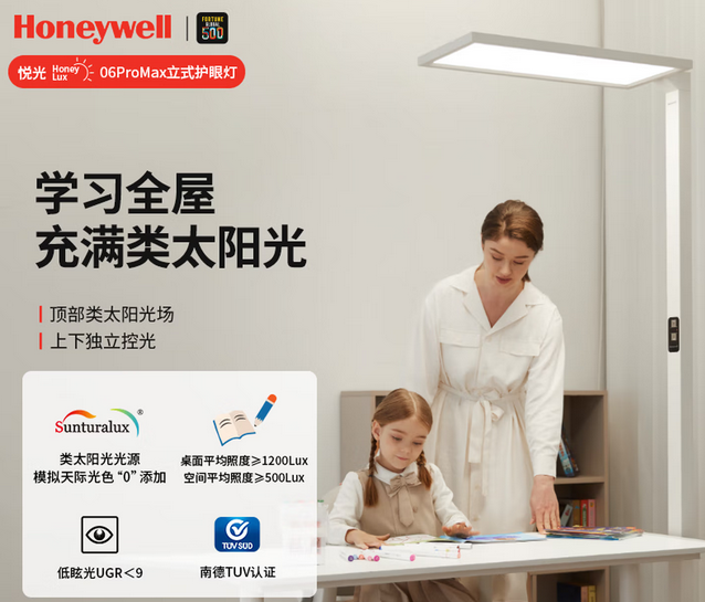 实测数据显示,霍尼韦尔06ProMax的桌面平均照度达到1425lx,是国AA标准的2倍多;空间平均照度也达到500lx以上,整体犹如太阳般将光置于头顶之上,光线覆盖全屋,彻底去除明暗分,0暗区,用灯体验极佳。