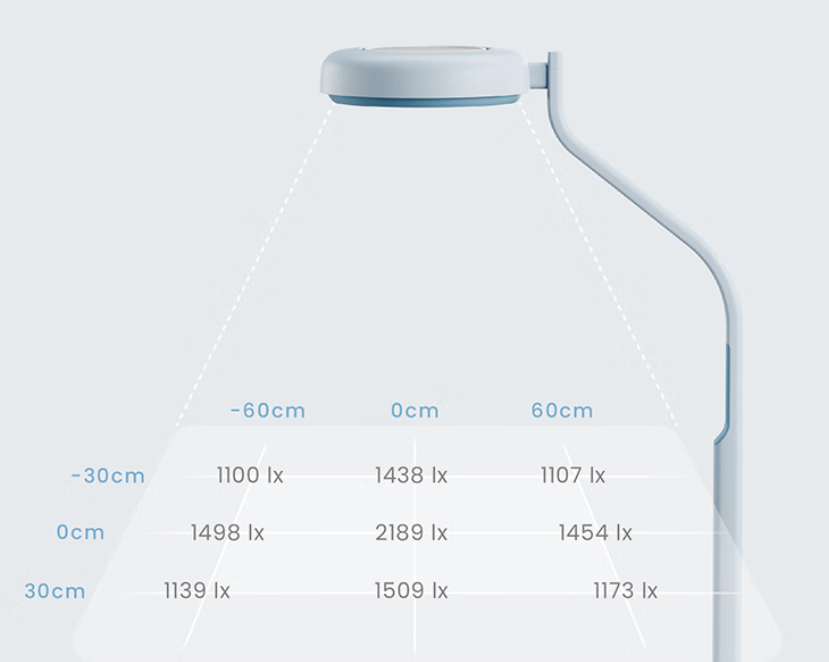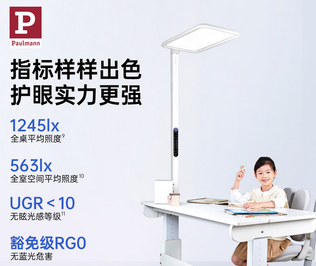 实测数据显示,柏曼骑士IPro的桌面平均照度达到1245lx,远超国AA标准;空间平均照度可达536lx,可轻松覆盖1.8米大书桌及20㎡大空间,光线均匀度媲美教室级照明标准,无明暗落差与阴影干扰。