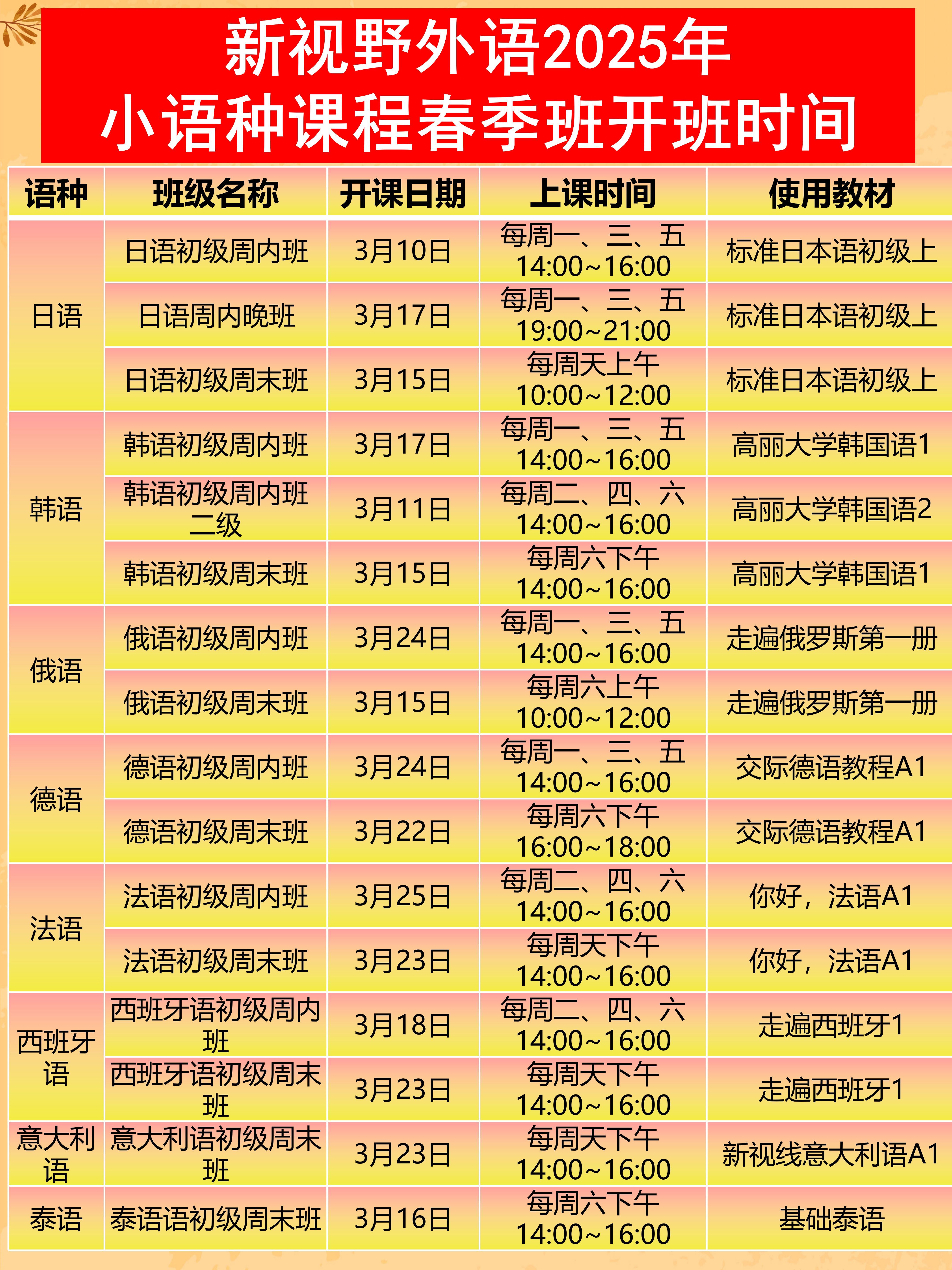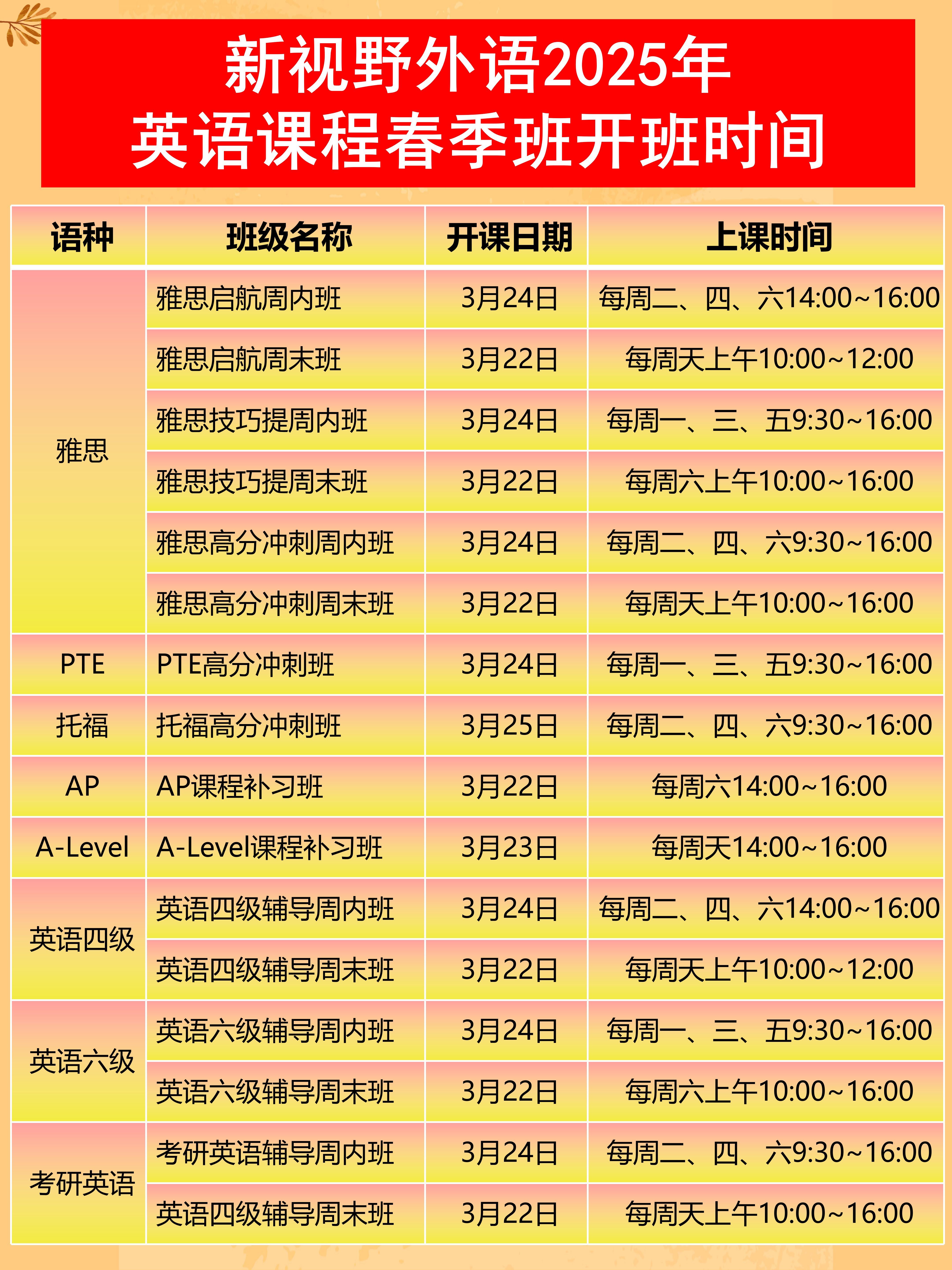 🎓 2025春季班,开启你的语言新世界!无论是雅思、英语四级、考研英语,还是日语、韩语,俄语等其他小语种,我们都为你量身定制最适合的课程,助你轻松跨越语言难关,迈向成功的下一步。