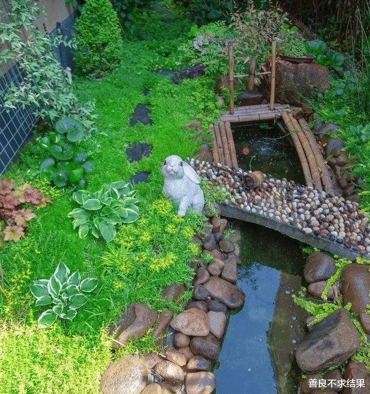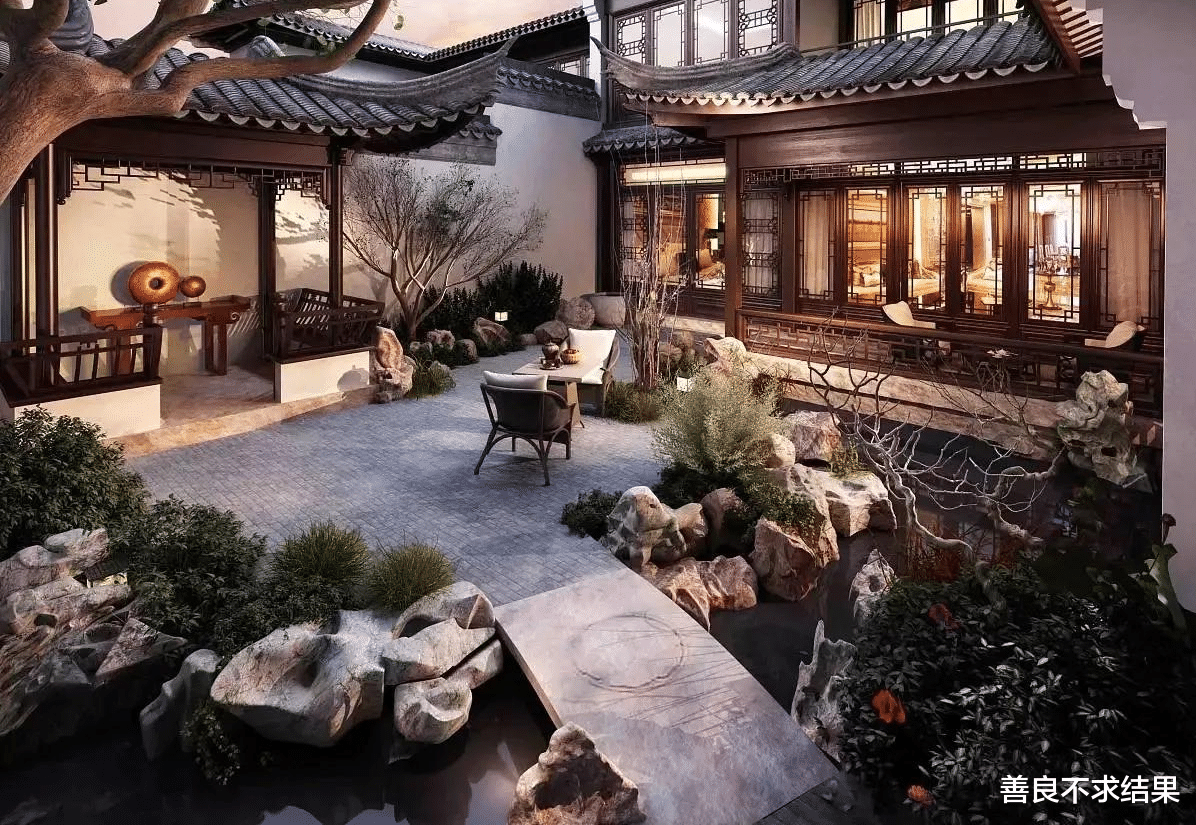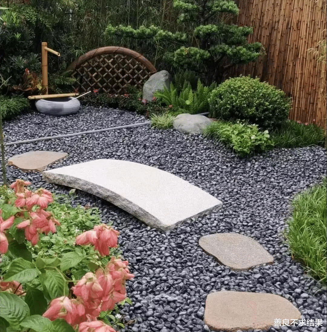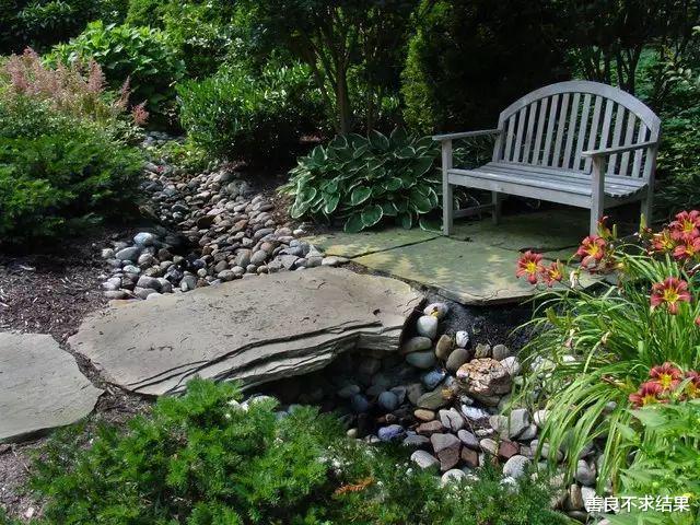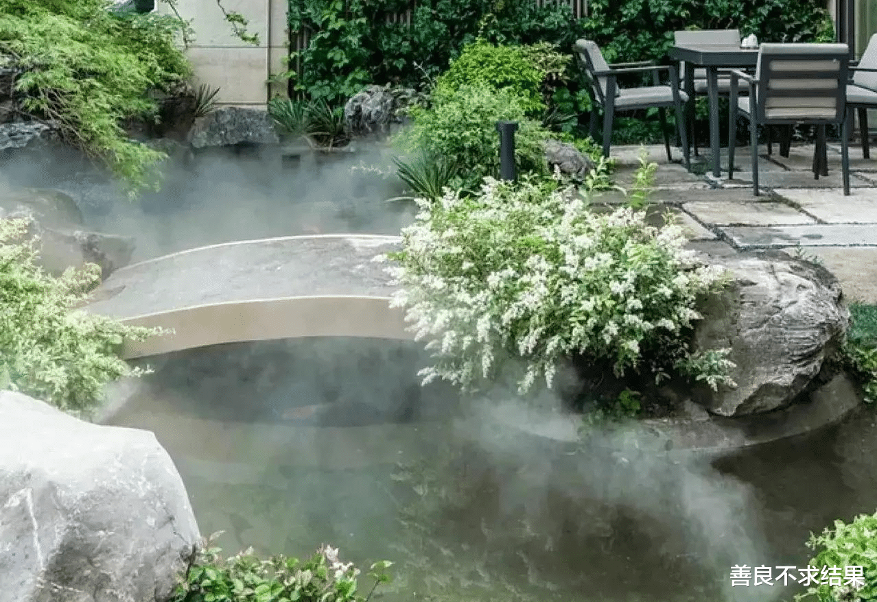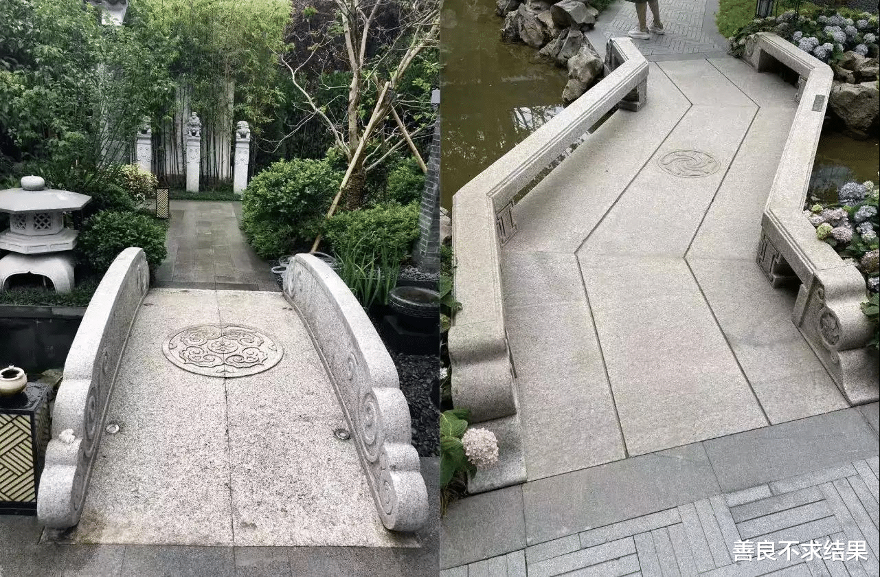 在大的庭院设计中,为了让庭院更加生动,灵活,很多设计师会选择小桥流水来美化庭院。