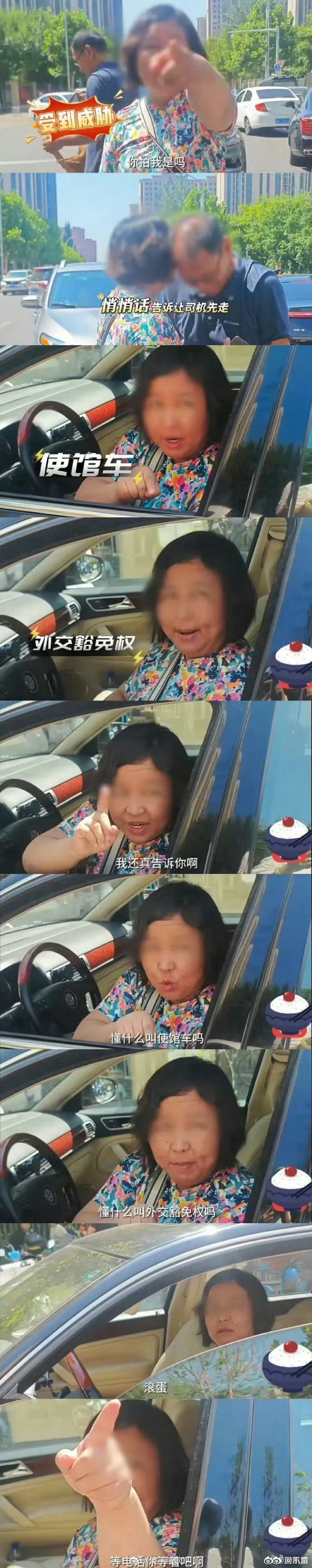 悬挂大使馆车牌的车辆到路中央违停堵路,路过司机好心提醒,大妈竟这样说!?沟通过程中女子叫嚣:懂吗,懂吗,懂什么叫外交豁免权吗?