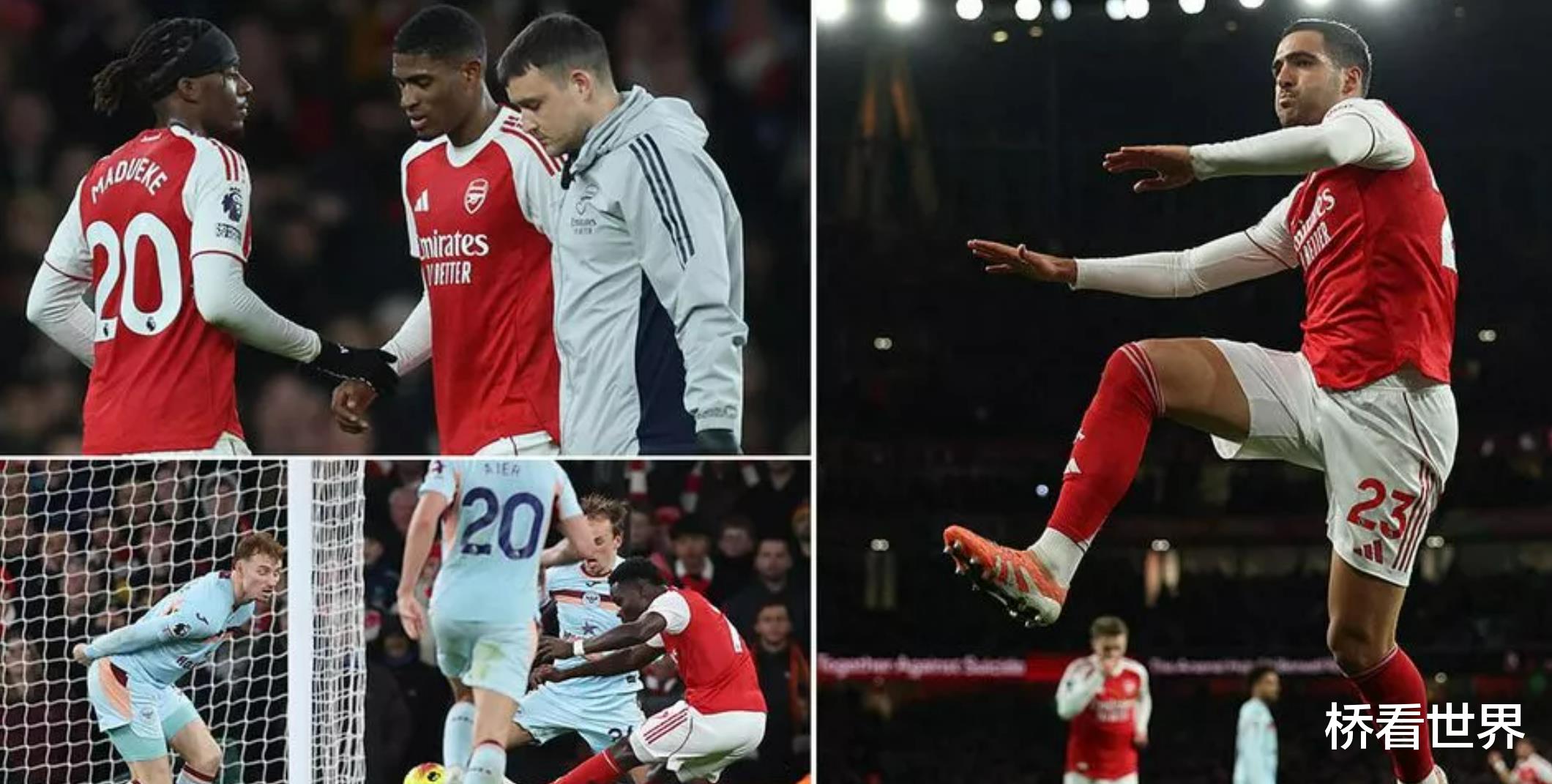 阿森纳 2-0 战胜布伦特福德,将英超积分榜领先优势扩大至 5 分。但球队又一名中后卫在比赛中受伤离场。