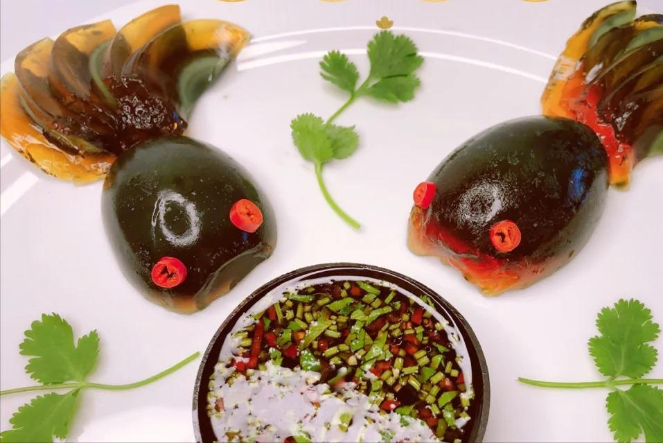 用皮蛋做出鱼的造型,寓意年年有余,象征着生活富足,每年都能有多余的财富和粮食,多吉利呀!这道菜做法有个小重点,皮蛋得先煮一下。煮完之后切皮蛋可有讲究,每切一刀就得把刀擦干净,再蘸点凉水接着切,这样切出来的皮蛋才干净利落。