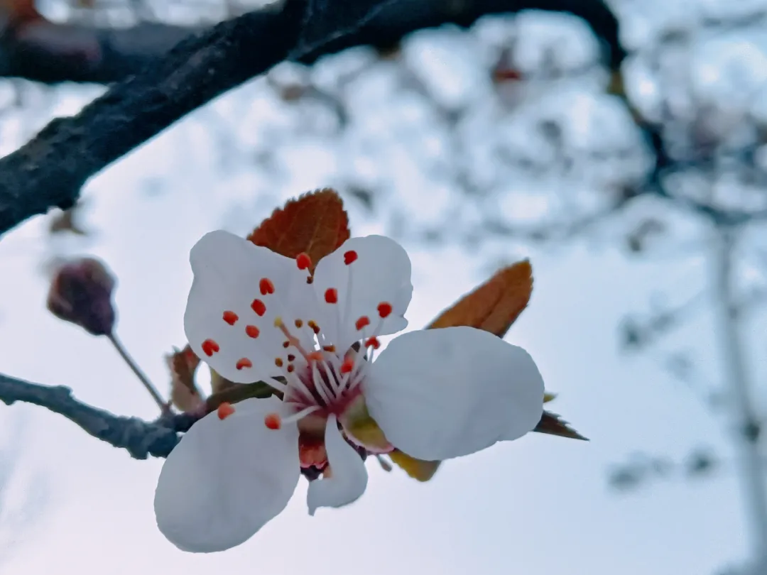 才几天时间,红叶李枝头的花朵眼看着稠密了。洁白的花朵,衬出一树清雅,满树温柔。