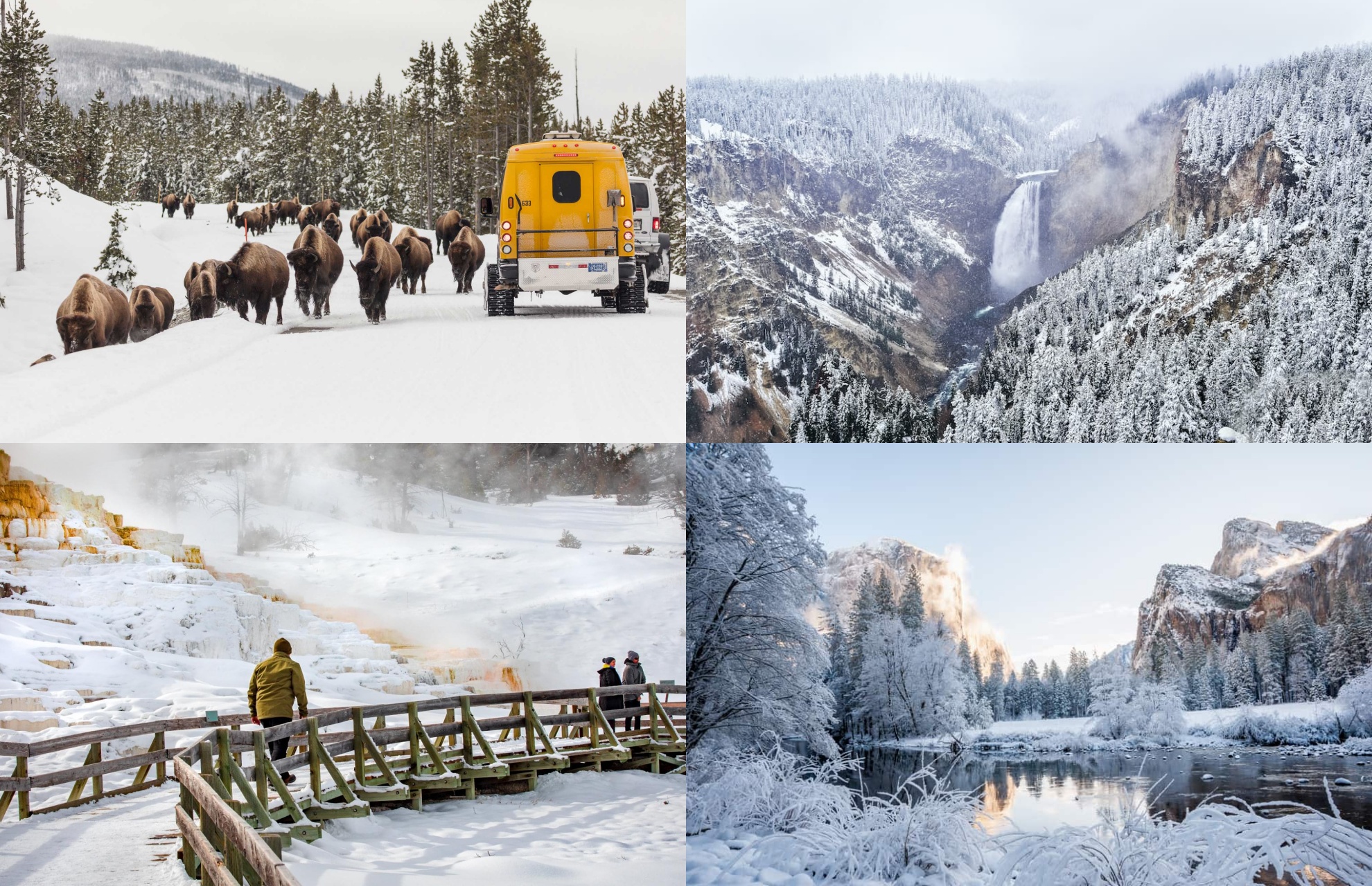 3️⃣虽然冬季黄石公园依旧开放,但自驾车基本无法进入🚫,只能依靠带有导航的特殊雪地巴士🚐,需要提前预定,在温暖车厢中穿越冰雪世界