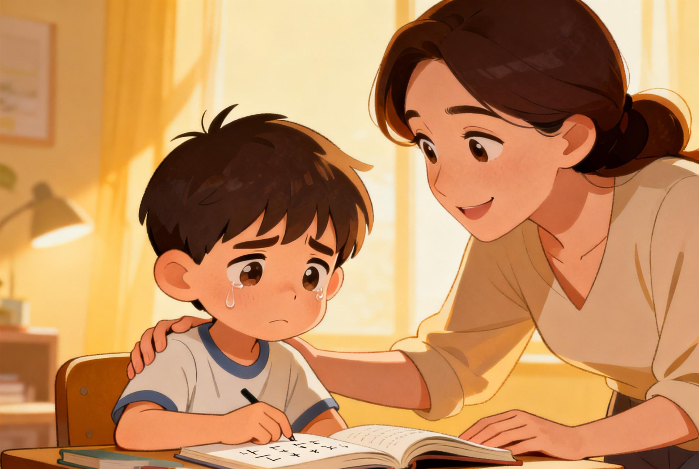 客厅里,孩子正趴在茶几上写作业,笔尖在纸上摩擦出沙沙的声音。我没有像往常那样推门进去指责,也没有大声质问,只是站在门边,静静地看了他一眼。