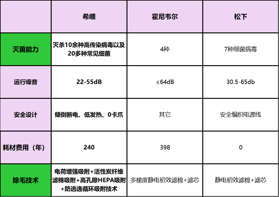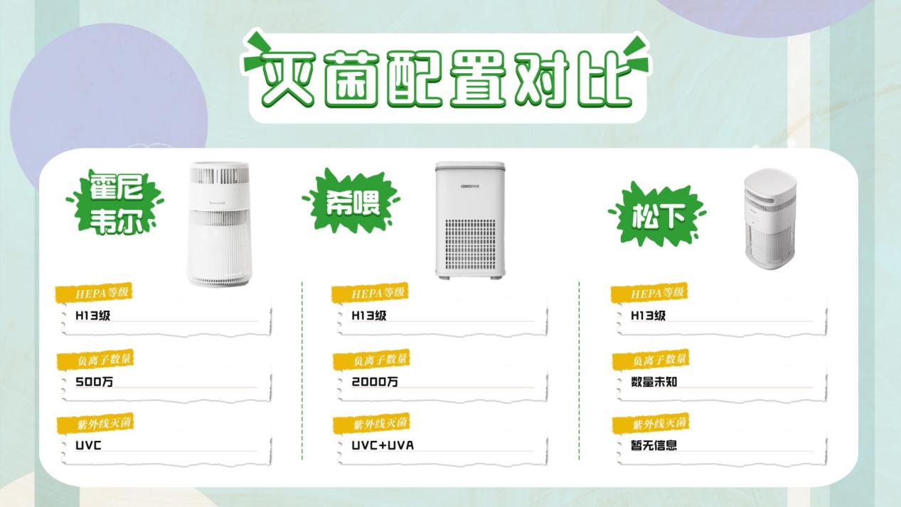 霍尼韦尔:以 HEPA 过滤和负离子为主,能够满足日常基础需求,但在深层消杀层面相对保守。