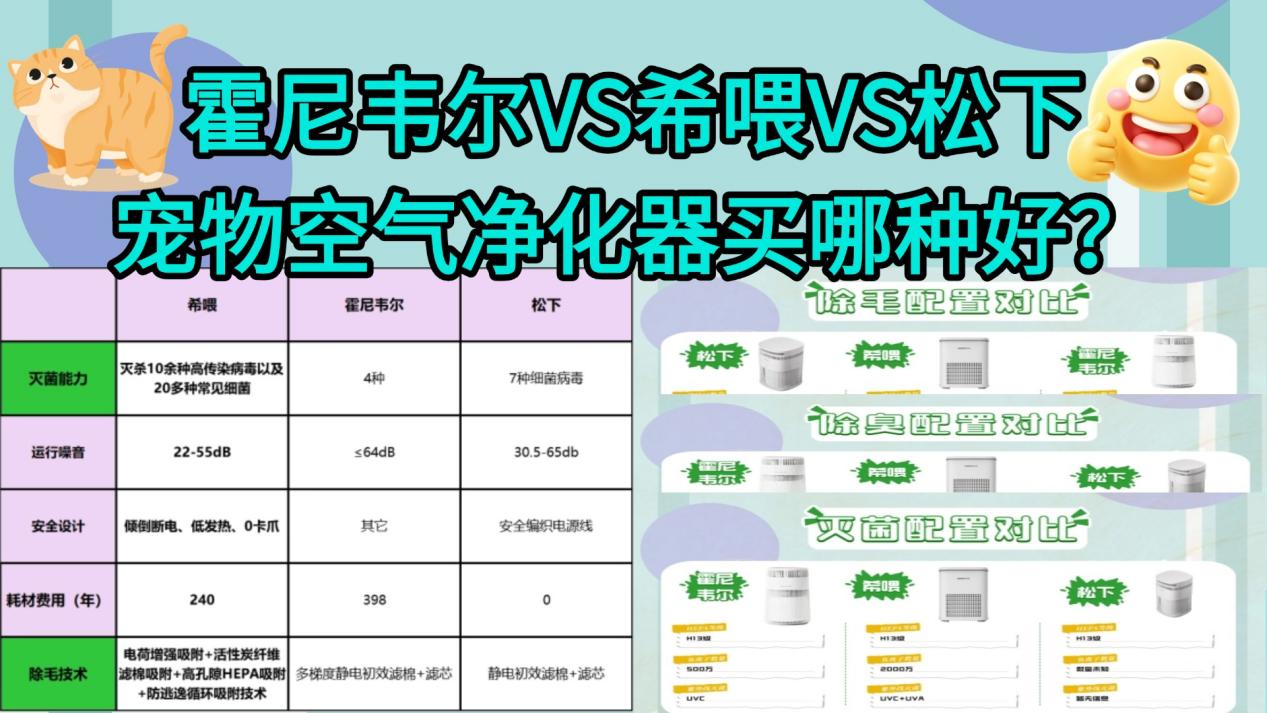 为了弄清不同机型在实际使用中的差异,解决“宠物空气净化器买哪种好?”这个问题,我们选取了希喂、松下和霍尼韦尔三款关注度较高的产品,从多个核心维度进行对比测试,希望给养宠家庭一个更接近真实使用体验的参考。