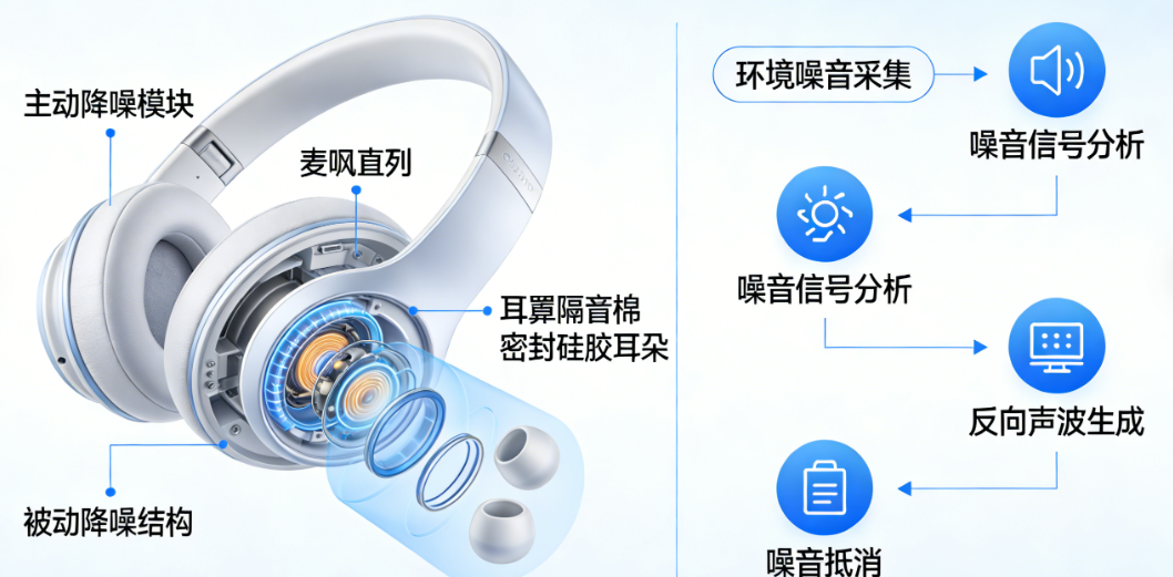 单纯物理隔音或普通主动降噪不够用,混合降噪才是王道。主动降噪抵消空调、风扇等低频噪音,被动隔音隔绝翻身、窗外杂音等中高频干扰,双重防护,还不会产生明显耳压,安睡一整晚。