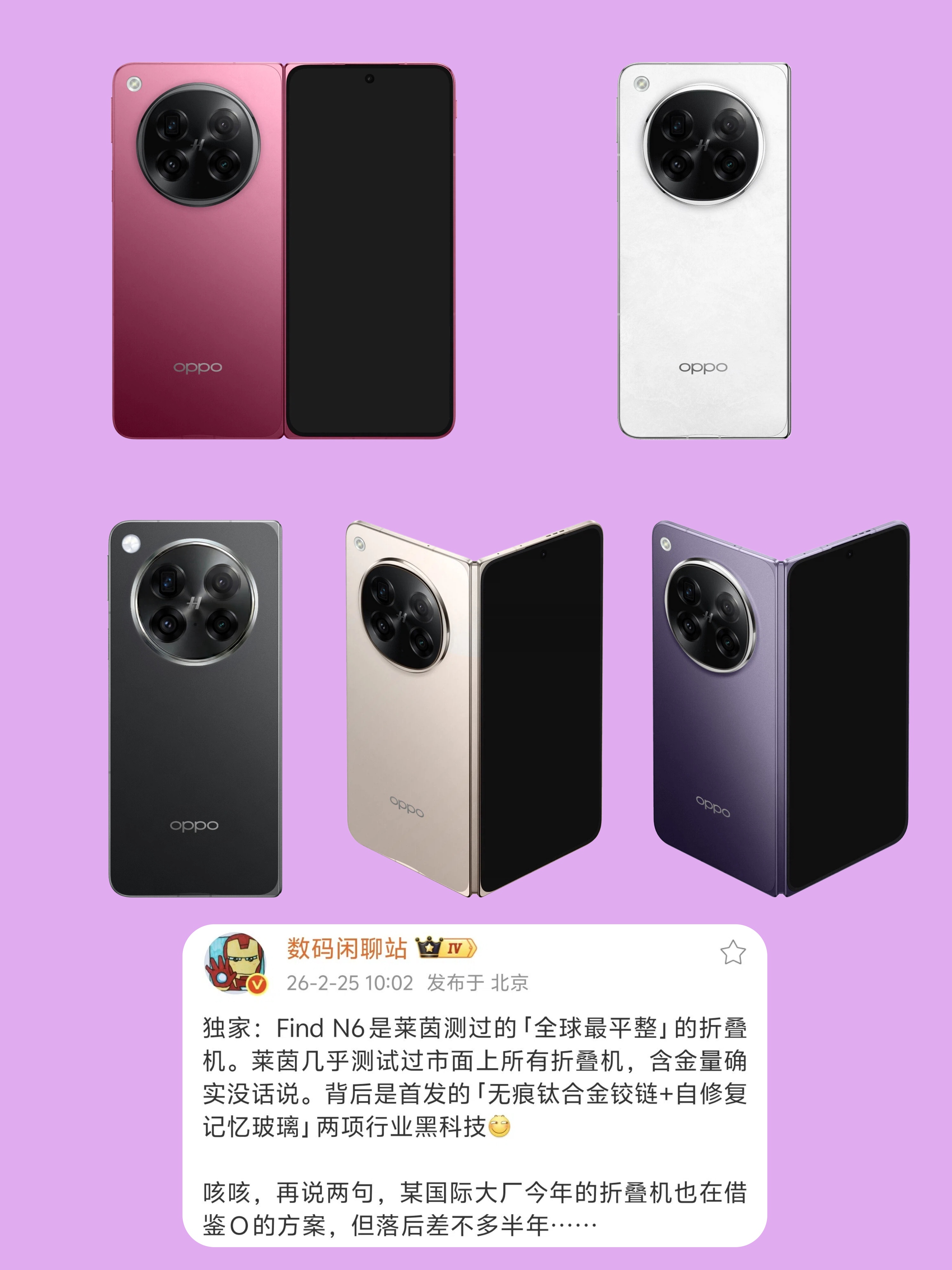 年后开工海报直接明牌了——OPPO Find N6主打一马「平」川!据说这次直接不装了,亮出两大黑科技:「无痕钛合金铰链」+「自修复记忆玻璃」,拿下了莱茵认证的「全球最平整折叠屏」!🏆
